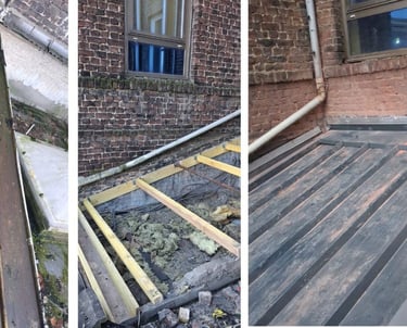 Lors d’une intervention à Roubaix, notre équipe de couvreurs a été sollicitée pour une infiltration d’eau persistante dans une habitation. Après un diagnostic complet de la toiture, nous avons identifié l’origine de la fuite au niveau de l’ancienne toiture en tôle / bac acier, devenue non étanche avec le temps. L’eau s’infiltrait progressivement et causait des dégâts à l’intérieur de la maison. Pour garantir une solution durable, nous avons procédé à la dépose complète de la toiture existante, à la pose de chevrons neufs, ainsi qu’à la réfection du chéneau en zinc. La couverture a ensuite été entièrement refaite avec un nouveau bac acier, accompagné de solins neufs assurant une parfaite étanchéité. Cette intervention a permis de sécuriser la toiture et de supprimer définitivement les infiltrations.